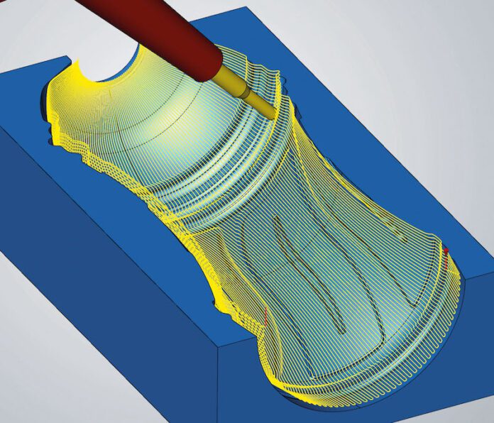 Programmazione semplificata e al contempo superfici ottimali: ecco ciò che offre la funzione Lavorazione radiale a 5 assi. Grazie a una procedura di proiezione radiale, con questa nuova strategia è possibile calcolare molto più velocemente i percorsi dell’utensile, ad esempio nei contorni delle bottiglie. Ogni singola fase può essere eseguita con un’inclinazione indicizzata per ogni taglio, in modo da garantire la massima qualità delle superfici. Per le aree di sovrapposizione sono inoltre disponibili strategie con l’integrazione predefinita “Modalità per superfici ad alta precisione”, che consente una precisione superficiale a livello micrometrico accanto alla “Sovrapposizione dolce”.