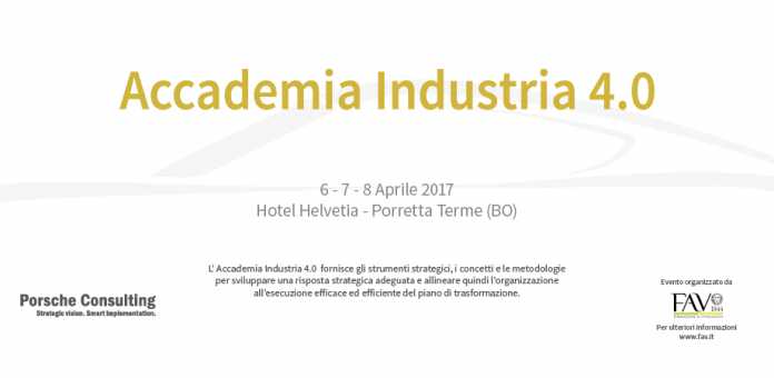Accademia Industria 4.0 si svolge il 6,7,8 aprile 2017 a Porretta Terme (BO) e per ulteriori informazioni potete consultare il sito dedicato http://www.fav.it/porsche-consulting-AKA-accademia-industria